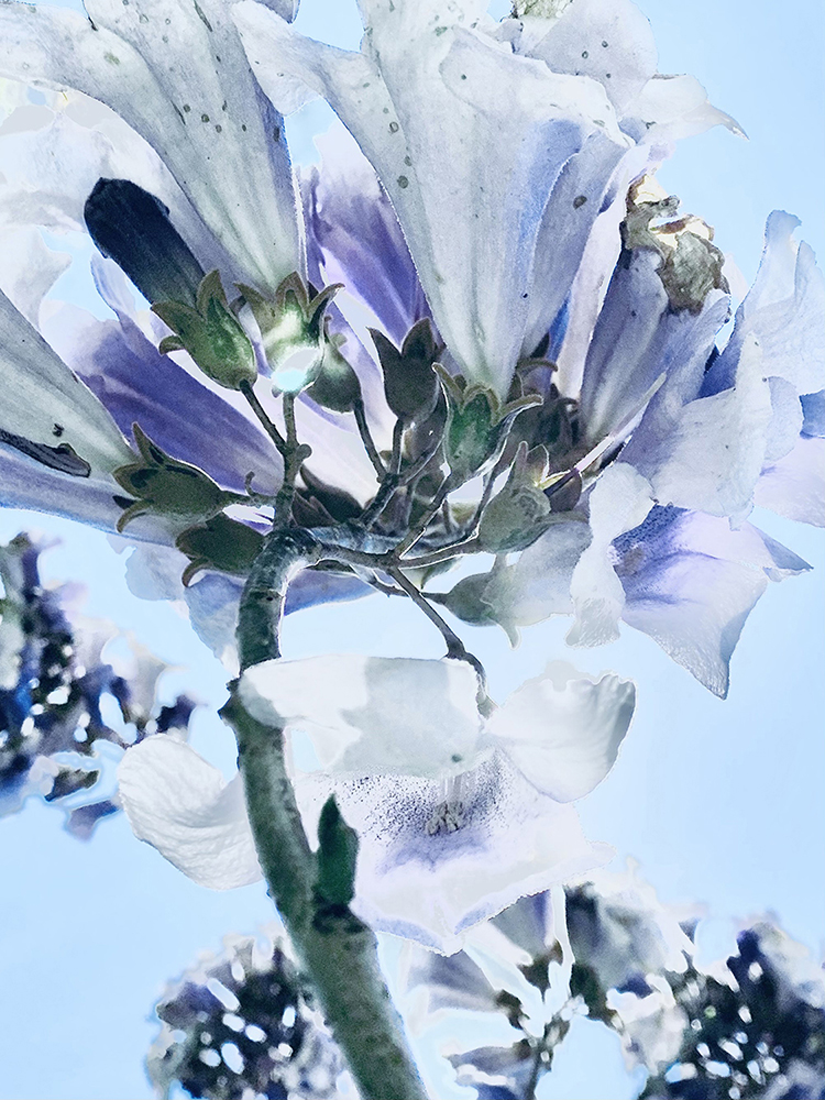 Blue est une respiration, une immersion dans l’apesanteur du bleu. Des sommets au-dessus des nuages, des fleurs effleurant le ciel, sublimées par la lumière… Une sensation d’élévation, de calme suspendu, où le regard se laisse porter par la douceur de cette couleur.