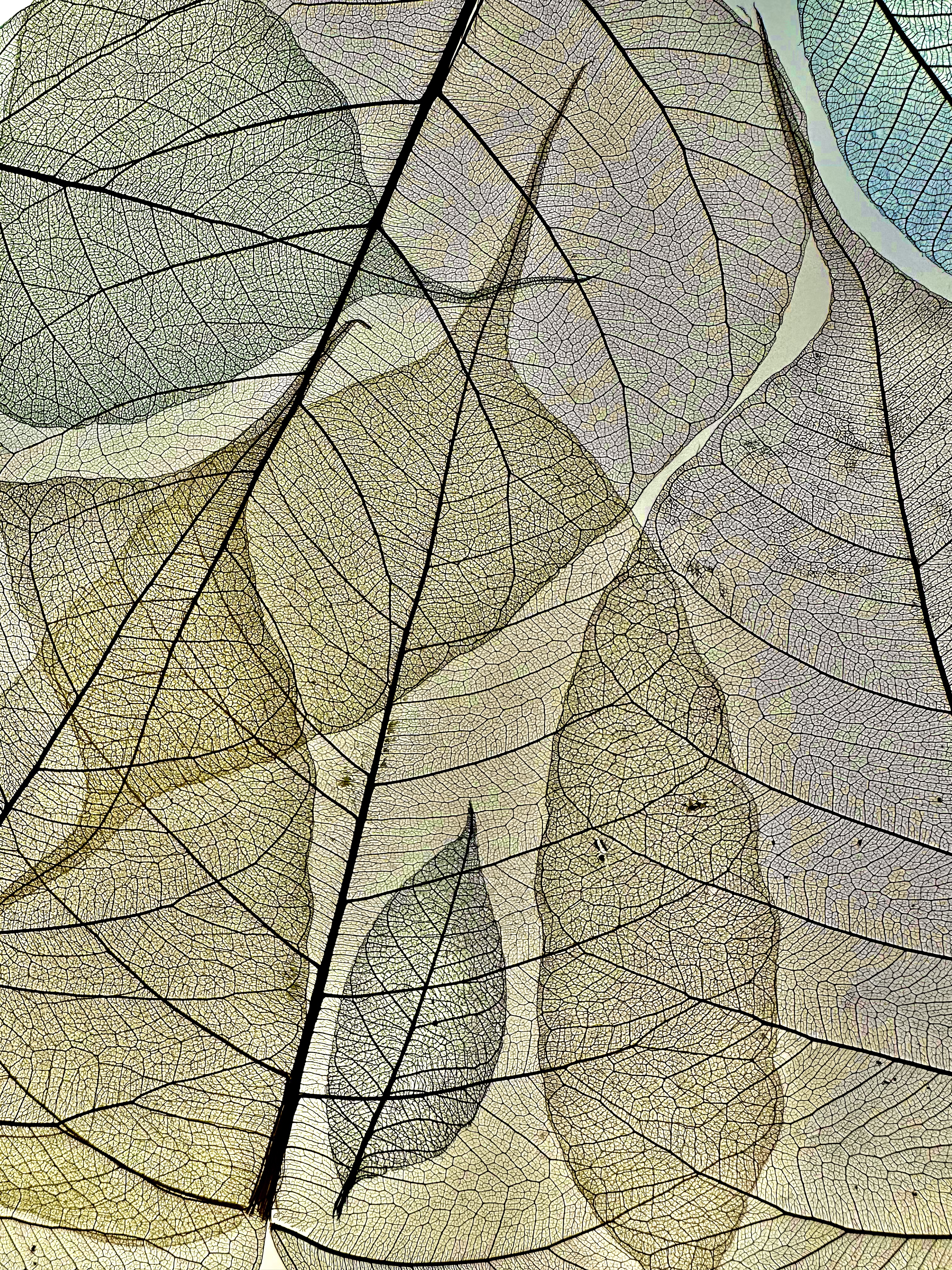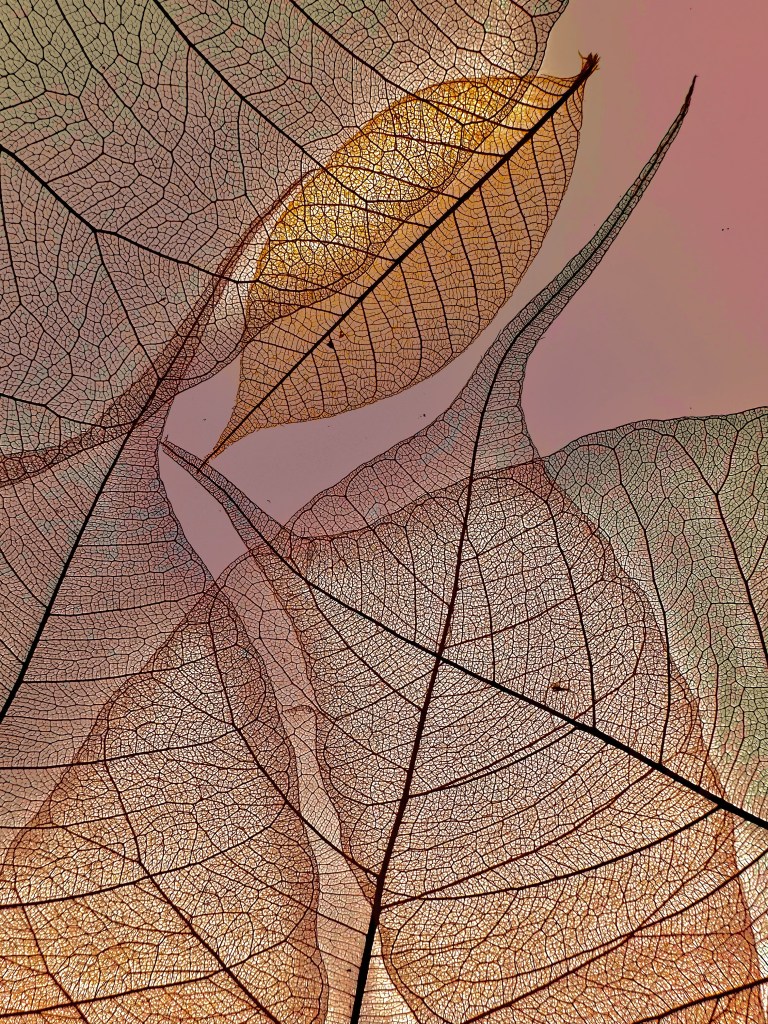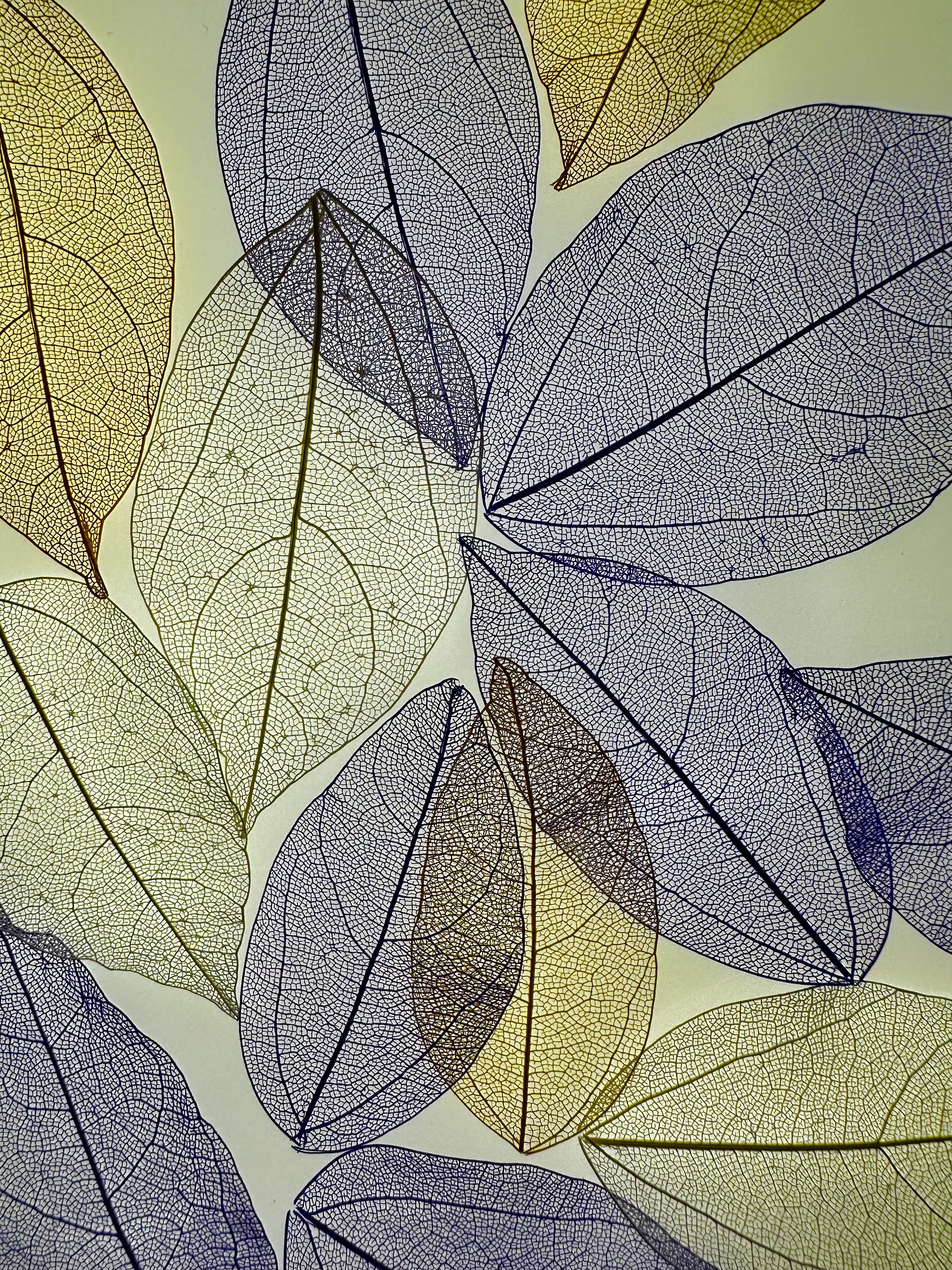 Résonance explores the memory of plants and the traces they leave behind. Reduced to their delicate veins, these leaves become subtle imprints, fragile echoes of time passing. The shifting colors intensify their vibration, revealing the emotions that linger beyond disappearance.