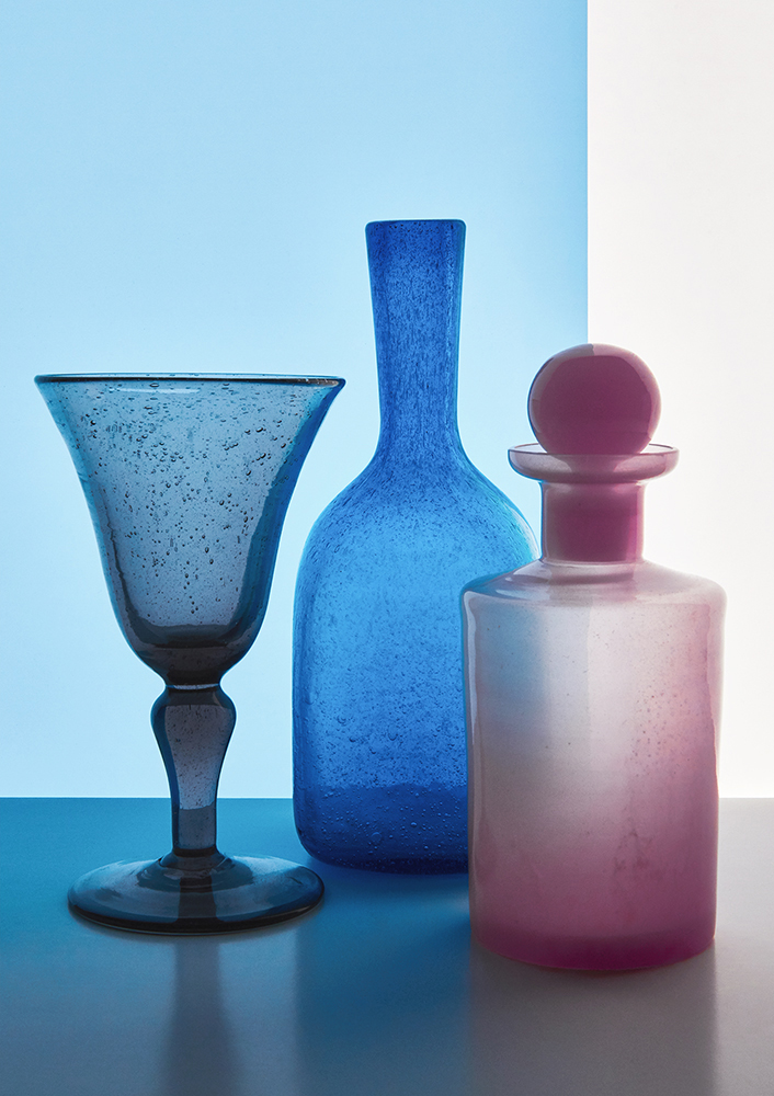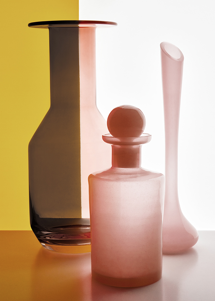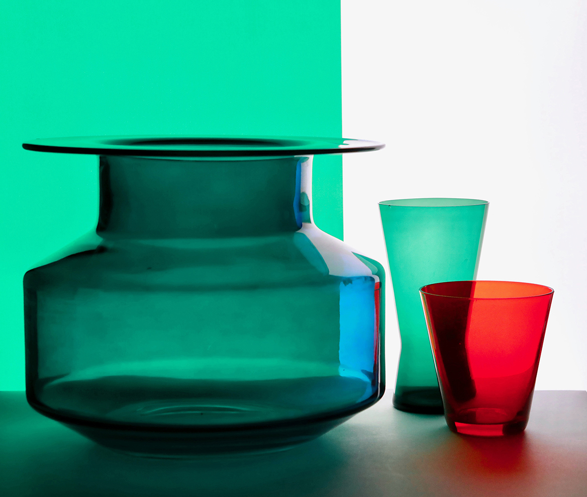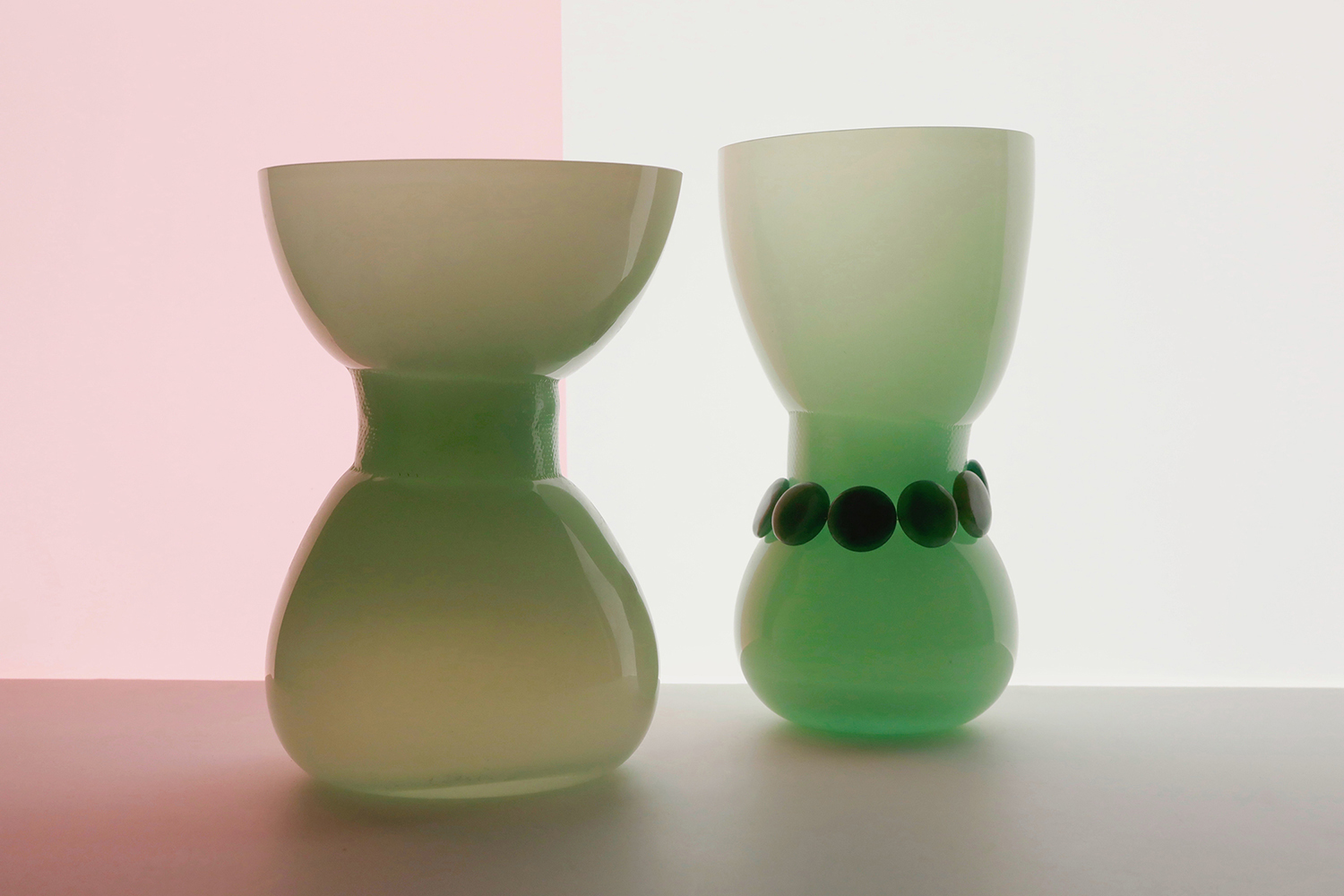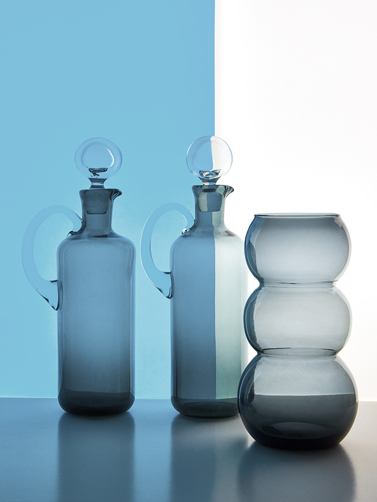 With these vases, fruits of a large personal collection, Sophie unites colors with delicacy and sublimates transparencies.