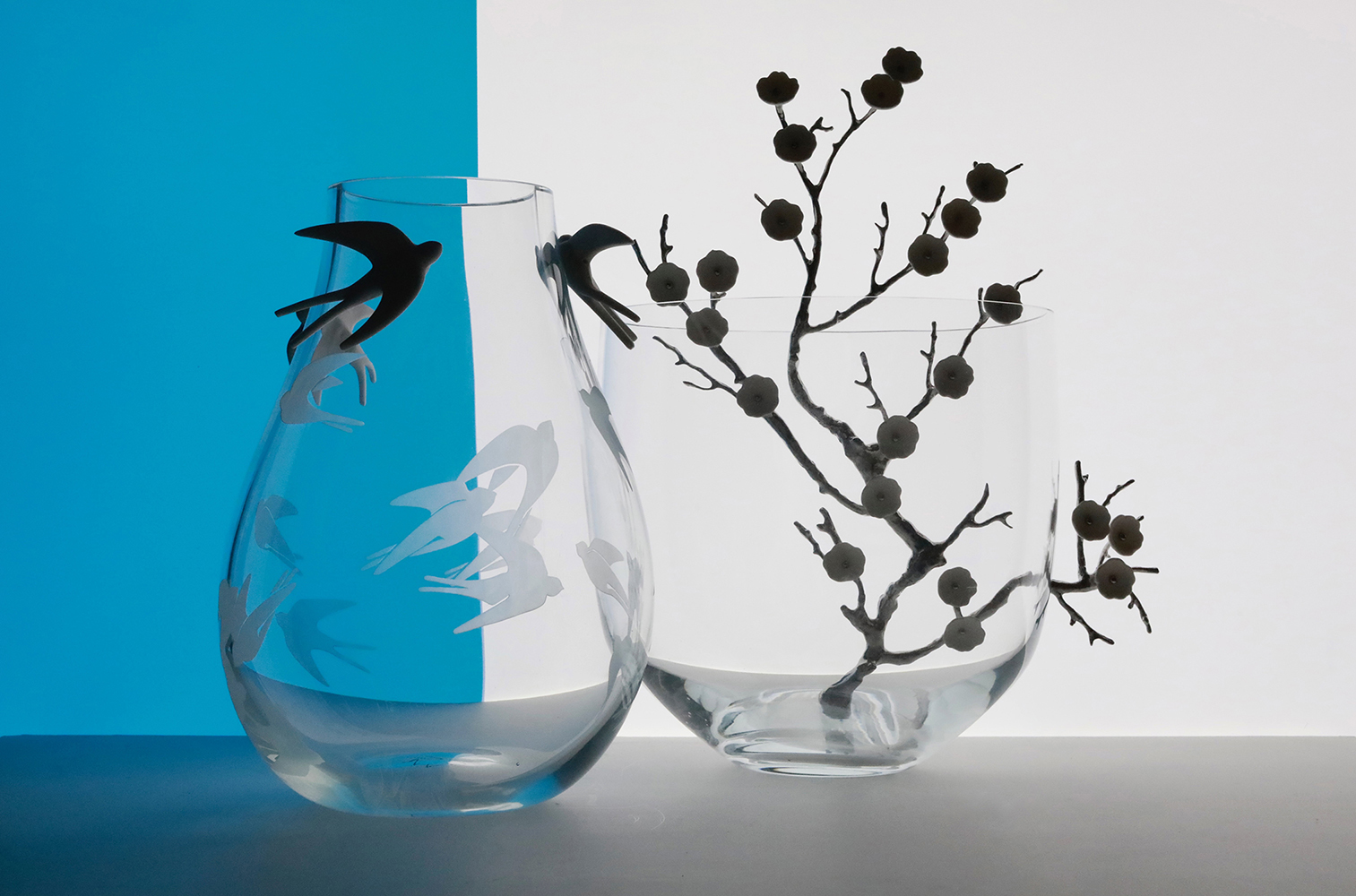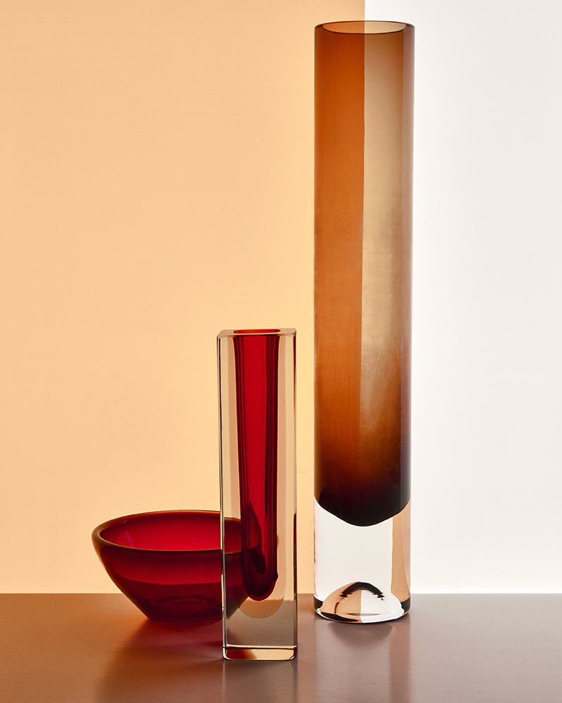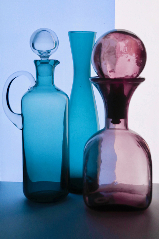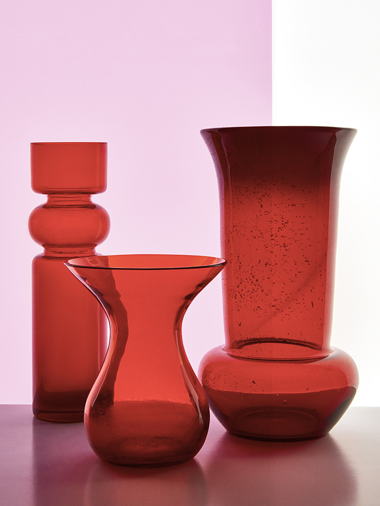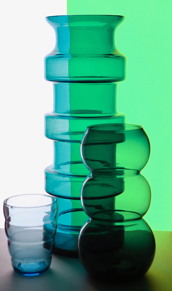 With these vases, fruits of a large personal collection, Sophie unites colors with delicacy and sublimates transparencies.